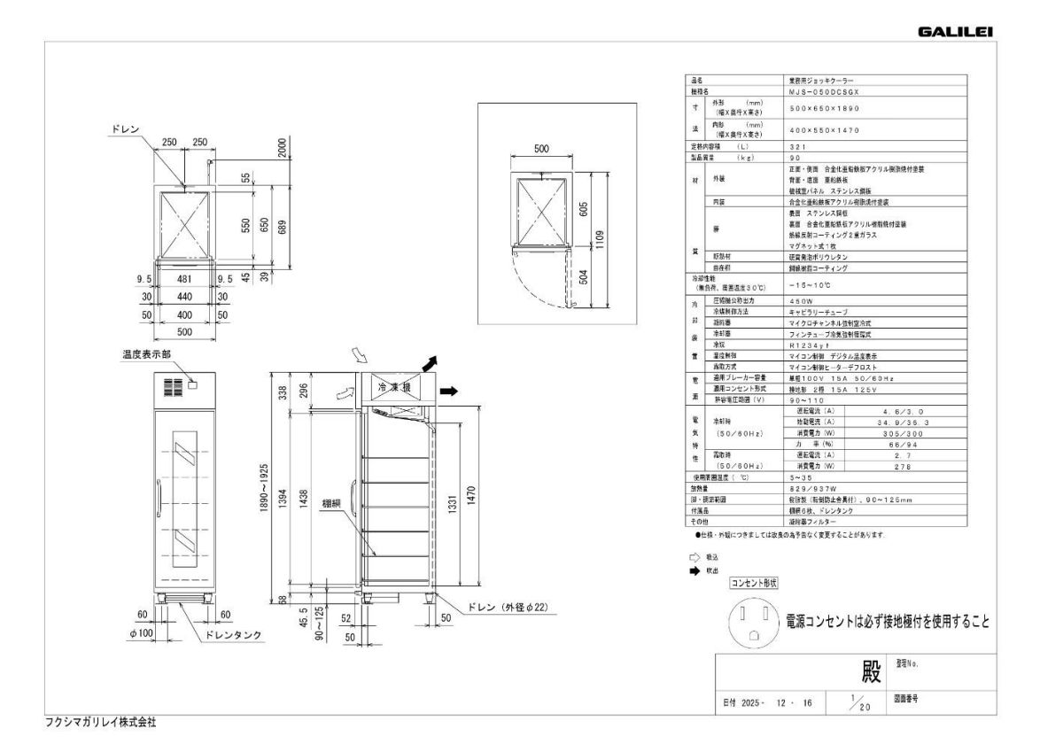 他の画像を見る MJS-050DCSGX【フクシマガリレイ】ビールジョッキクーラー 幅500×奥行650×高さ1890 ジョッキ冷却専用 【業務用/新品】【送料無料】 定価 ¥ 822,800 (税込)のところ 販売価格 ¥ 303,700 税込 詳細を見る