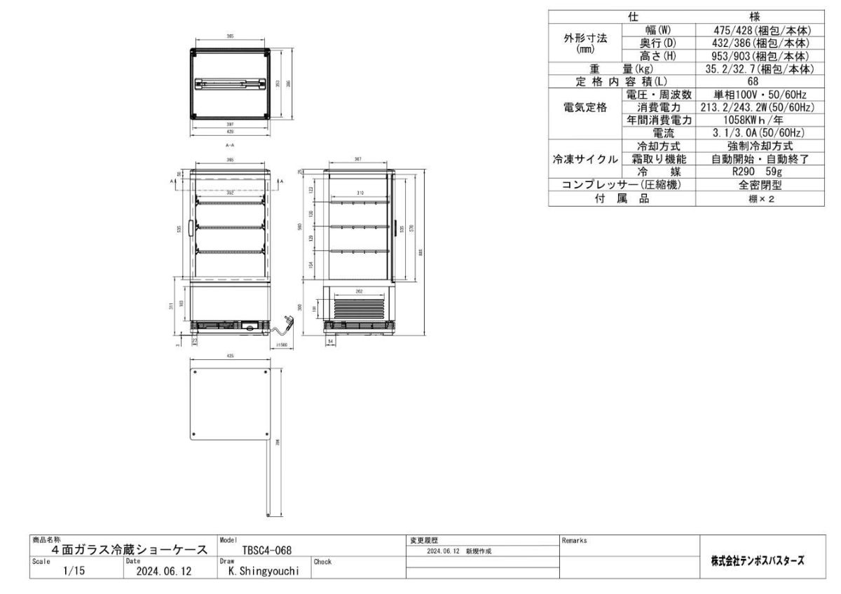 他の画像を見る 【テンポスオリジナル】TB4面ガラス冷蔵ショーケース 68L 黒 TBSC4-068-BK 幅428×奥行386×高さ903(mm) 単相100V/業務用/新品/送料無料 定価 ¥ 136,950 (税込)のところ 販売価格 ¥ 39,973 税込 詳細を見る