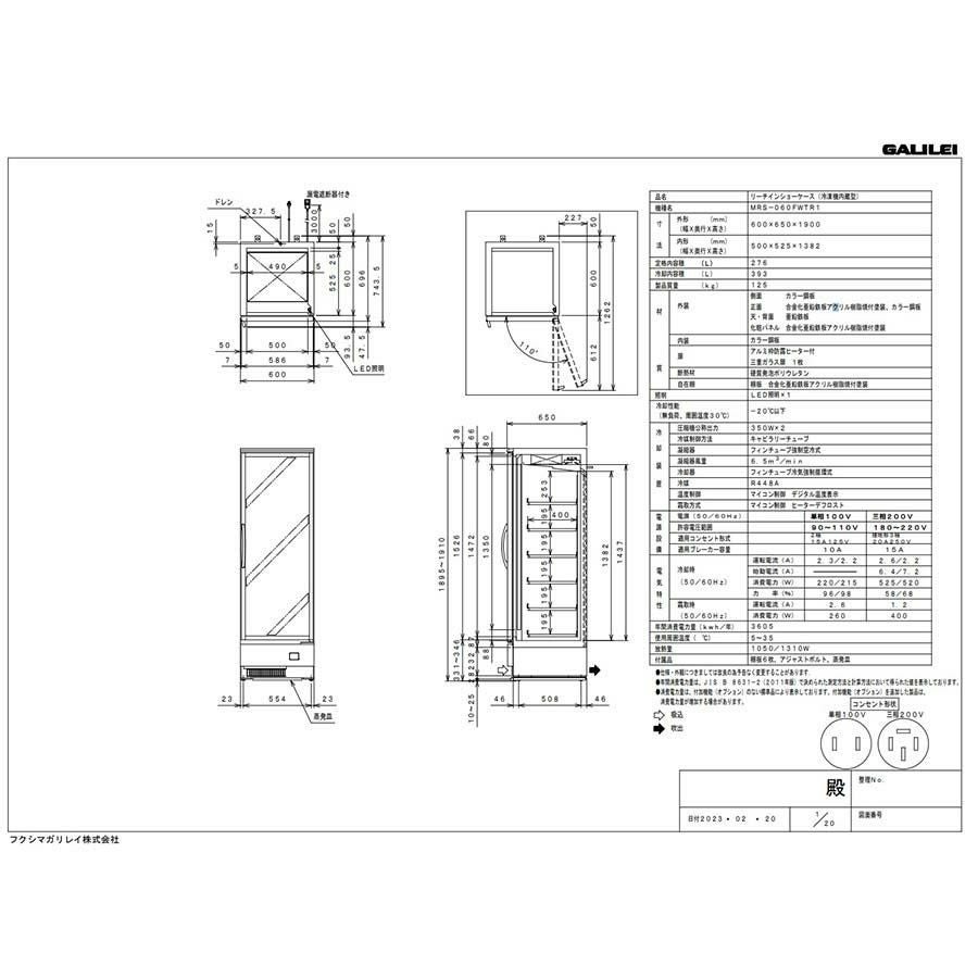 他の画像を見る 【MRS-060FWTR2】【フクシマガリレイ】リーチインショーケース 冷凍タイプ 幅600×奥行650×高さ1900 三相200V/単相100V【業務用/新品】【送料無料】 定価 ¥ 1,043,900 (税込)のところ 販売価格 ¥ 439,537 税込 詳細を見る