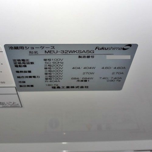 他の画像を見る 直接引取の場合は送料追加なし【札幌白石店】 【中古】冷蔵多段オープンショーケース フクシマガリレイ(福島工業) MEU-32WKSA5G 幅900×奥行600×高さ1900 【送料別途見積】【業務用】【札幌白石店在庫】 販売価格 ¥ 258,720 税込