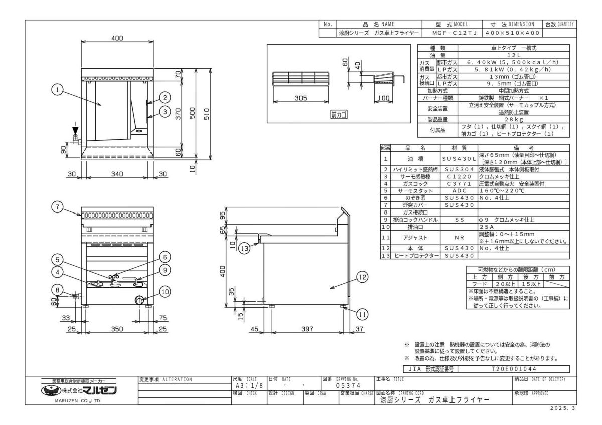 他の画像を見る MGF-12TJ 【マルゼン】 ガスフライヤー 12L 卓上タイプ 幅400×奥行500×高さ400(mm) 【業務用/新品】【送料無料】 定価 ¥ 191,400 (税込)のところ 販売価格 ¥ 99,667 税込 詳細を見る
