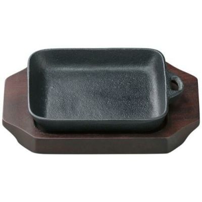 商品名:取っ手付角型ステーキ鉄皿18.5cm用木台