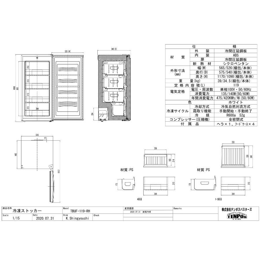 他の画像を見る 累計販売台数3万台突破! TBUF-198RH 【テンポスオリジナル】 冷凍ストッカー 7段 前扉タイプ 198L 単相100V 幅549×奥行560×高さ1636(mm) 【業務用/新品】【送料無料】 定価 ¥ 176,000 (税込)のところ 販売価格 ¥ 57,740 税込 詳細を見る