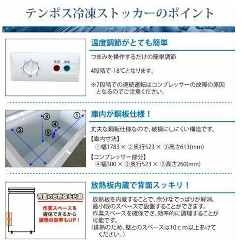 他の画像を見る 累計販売台数3万台突破! TBCF-190-RH 【テンポスオリジナル】 冷凍ストッカー 上開きタイプ 190L 単相100V 幅950×奥行564×高さ845(mm) 【業務用/新品】【送料無料】 定価 ¥ 150,700 (税込)のところ 販売価格 ¥ 35,850 税込 詳細を見る