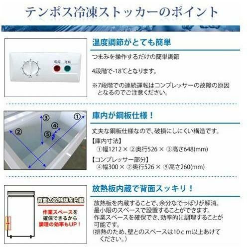 他の画像を見る 累計販売台数3万台突破! TBCF-190-RH 【テンポスオリジナル】 冷凍ストッカー 上開きタイプ 190L 単相100V 幅950×奥行564×高さ845(mm) 【業務用/新品】【送料無料】 定価 ¥ 150,700 (税込)のところ 販売価格 ¥ 35,850 税込 詳細を見る