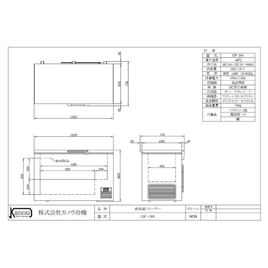他の画像を見る 【入れ替えキャンペーン商品】OF-300 【カノウ冷機】 超低温フリ-ザ- 300L 単相100V 幅1305×奥行730×高さ865(mm) 【業務用/新品】【送料無料】 定価 ¥ 0 (税込)のところ 販売価格 ¥ 367,946 税込 詳細を見る