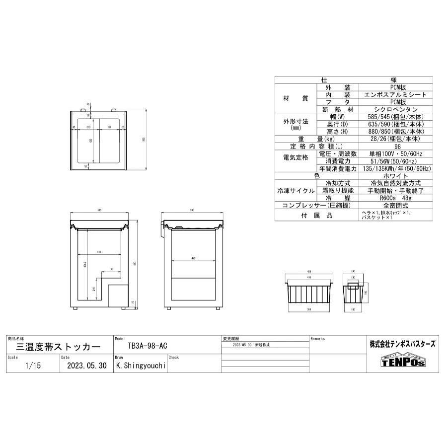 他の画像を見る テイクアウト専門店にも!一台三役!冷凍・チルド・冷蔵を切り替えできる! TB3A-197-AC197L 【テンポスオリジナル】三温度帯冷凍ストッカー 幅895×奥行590×高さ850 【業務用/新品】【送料無料】 定価 ¥ 0 (税込)のところ 販売価格 ¥ 35,080 税込 詳細を見る