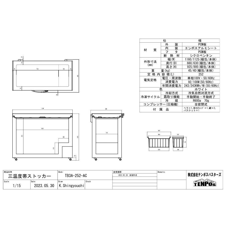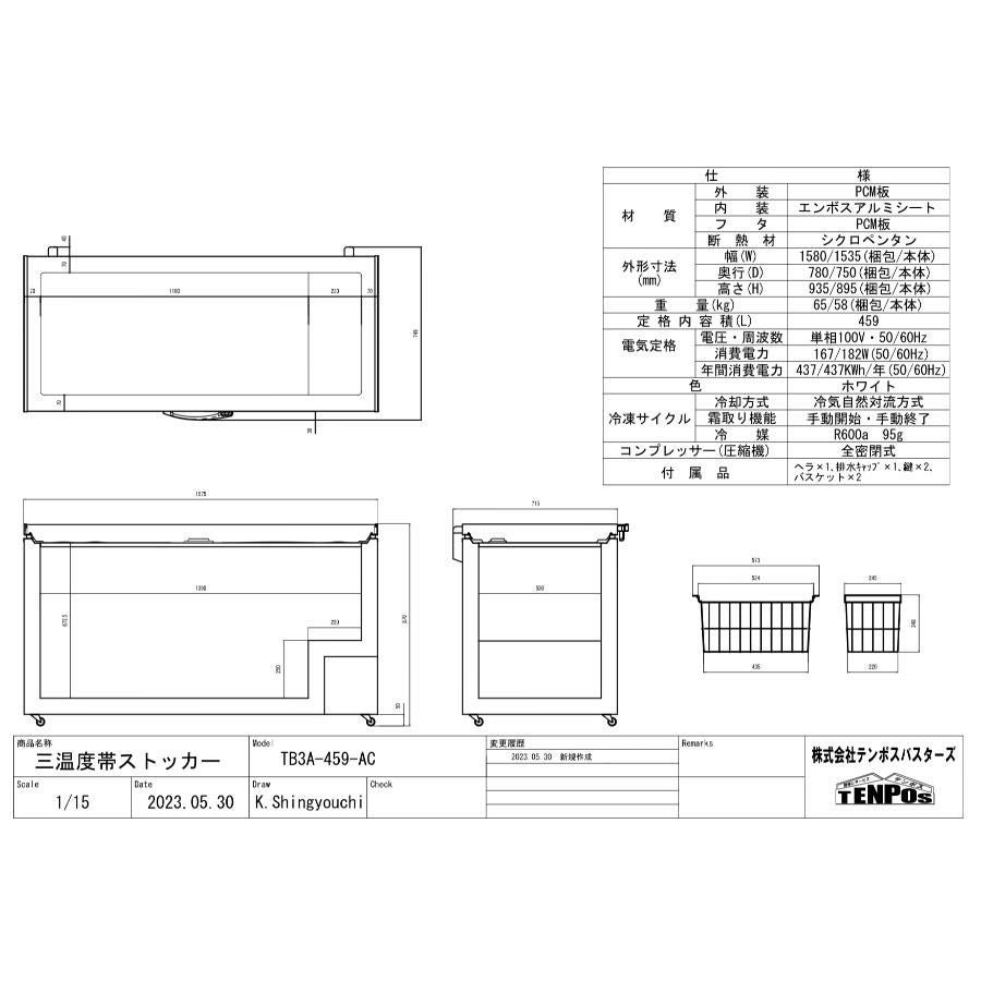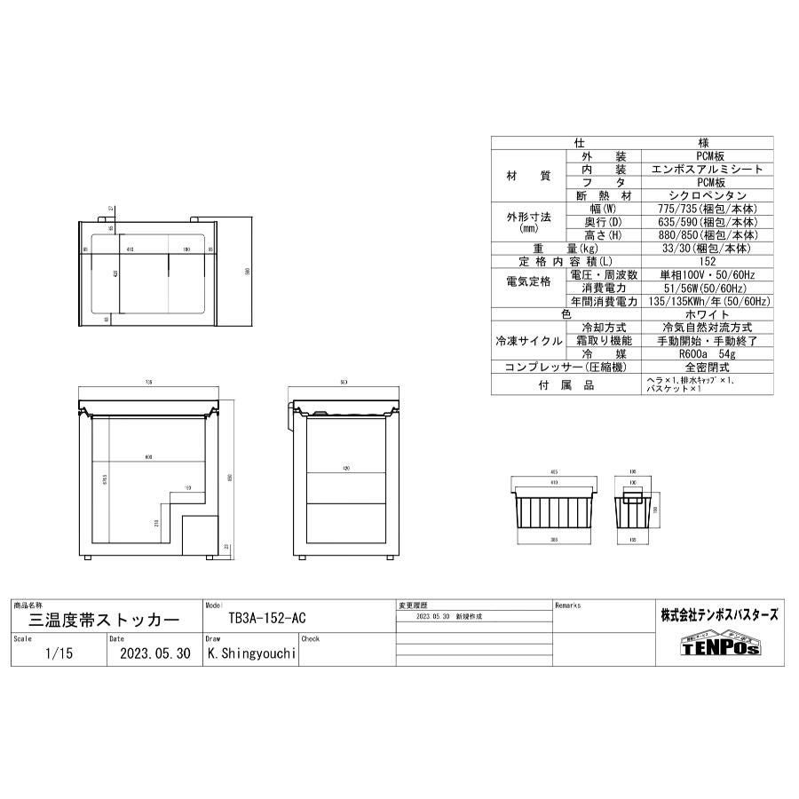 他の画像を見る テイクアウト専門店にも!一台三役!冷凍・チルド・冷蔵を切り替えできる! TB3A-152-AC 【テンポスオリジナル】三温度帯冷凍ストッカー 152L 幅735×奥行590×高さ850 【業務用/新品】【送料無料】 定価 ¥ 0 (税込)のところ 販売価格 ¥ 33,870 税込 詳細を見る