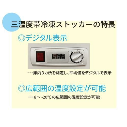 他の画像を見る 一台三役!冷凍・チルド・冷蔵を切り替えできる! 【入れ替えキャンペーン商品】TB3A-368-AC 【テンポスオリジナル】三温度帯冷凍ストッカー 368L 幅1275×奥行750×高さ895 【業務用/新品】【送料無料】 定価 ¥ 0 (税込)のところ 販売価格 ¥ 168,840 税込 詳細を見る