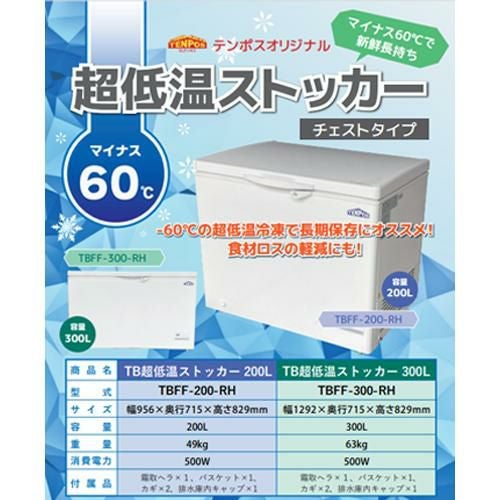 他の画像を見る 【入れ替えキャンペーン商品】TBFF-300-RH 【テンポスオリジナル】 超低温冷凍ストッカー 上開きタイプ 300L 単相100V 幅1292×奥行715(756)×高さ829(mm) 【業務用/新品】【送料無料】 定価 ¥ 0 (税込)のところ 販売価格 ¥ 236,050 税込 詳細を見る