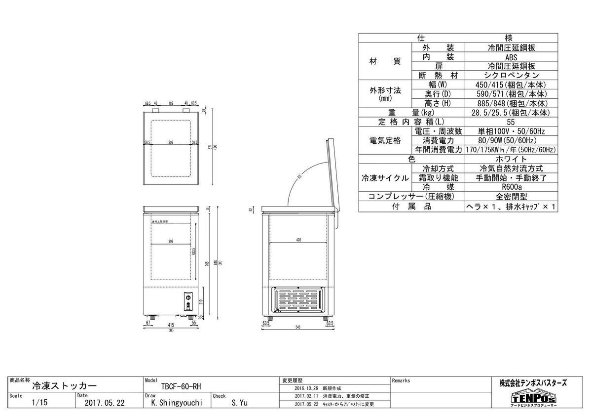 他の画像を見る 累計販売台数3万台突破! TBCF-60-RH 【テンポスオリジナル】 冷凍ストッカー 上開きタイプ 55L 単相100V 幅415×奥行571×高さ848(mm) 【業務用/新品】【送料無料】 定価 ¥ 77,000 (税込)のところ 販売価格 ¥ 22,430 税込 詳細を見る