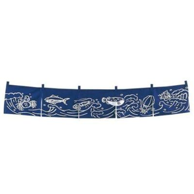 商品名:EBM 魚と波柄 のれん 小 YC-30(1050×280)