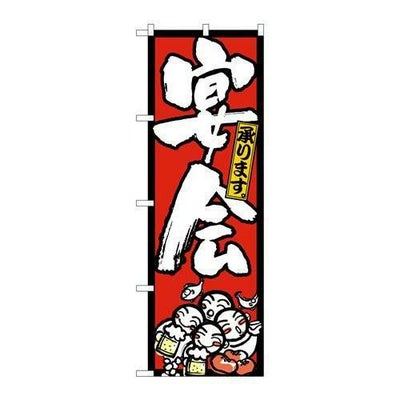 商品名:N_のぼり 26454 宴会承リ人イラスト 赤地黒枠
