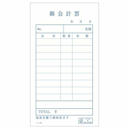 お会計票 2枚複写ミシン入り K (50組/冊)×10冊/業務用/新品/小物送料対象商品