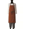 肩と腰ひもの別布テープ使い(綿100%)など旬なディティールがクラフト感満載な胸当てエプロンです。