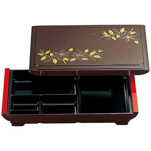 近年では、六ツ切仕切や九ツ仕切も珍しくはなく、松花堂用サイズの和食器を入れて組み合わせて使います。