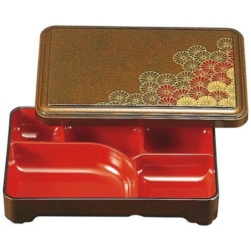 近年では、六ツ切仕切や九ツ仕切も珍しくはなく、松花堂用サイズの和食器を入れて組み合わせて使います。