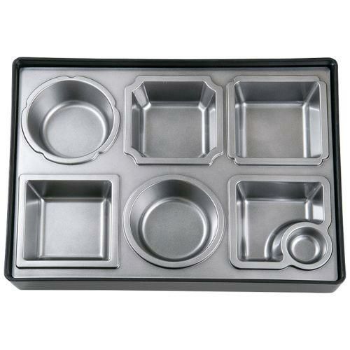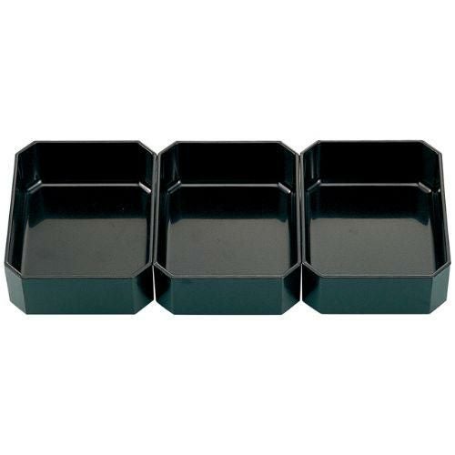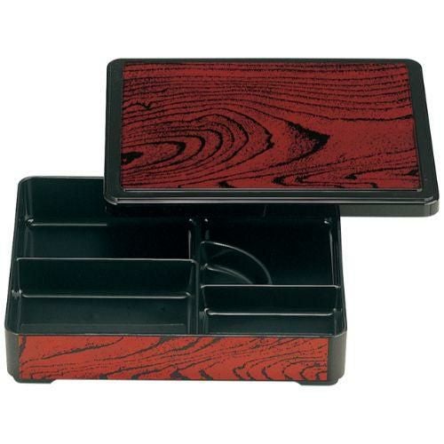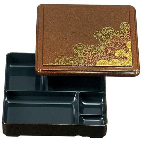 近年では、六ツ切仕切や九ツ仕切も珍しくはなく、松花堂用サイズの和食器を入れて組み合わせて使います。