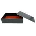 特記事項紙製の貼箱です。表面の漆塗り風の加工により高級感を演出。サイズ違い、色違いで全11種類の商品ラインナップ。