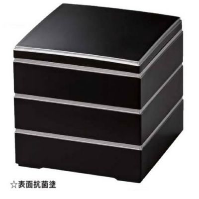 商品名:お重箱 6.5寸校倉重 艶消黒渕銀 3段