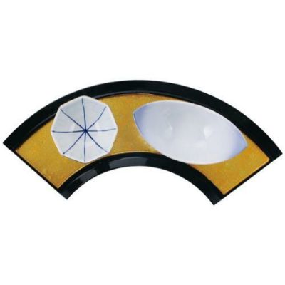 商品名:尺0扇面前菜浅皿 黒2色金箔