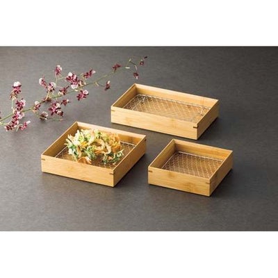 商品名:竹・天ぷら盛皿クリアー ステンレス目皿付 正角5寸