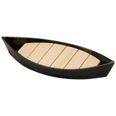 商品名:木製9寸荒彫笹舟盛器べっこう塗本体