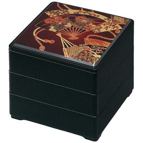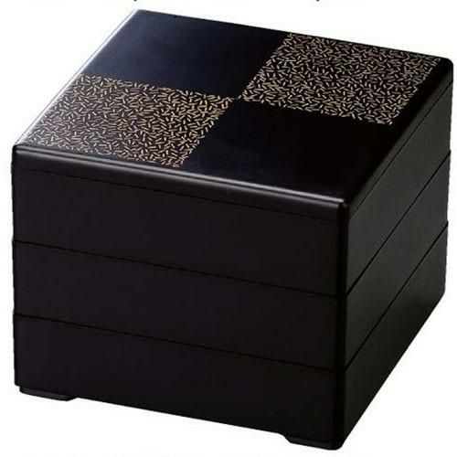6.5寸 彩重 艶消黒 地紋金市松 3段/業務用/新品/小物送料対象商品