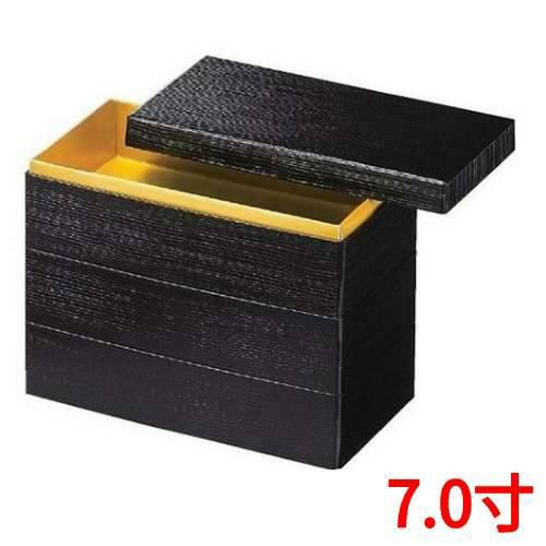 お重箱 7.0寸 彩重 艶消黒 地紋金市松 3段/業務用/新品/小物送料対象商品