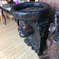 中古装飾 木彫 木桶置物 アイヌ風,