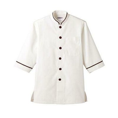 商品名:男女兼用ショップコート七分袖 ホワイト×ブラウン
