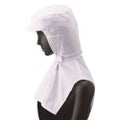 本体は接触冷感素材で、額、頬にぴったりフィットする吸汗速乾ニット。ツバ芯は洗濯に強いポリエステル製「織芯」、ケープは肩に優しい立体パターン。メガネ差しは着用時の隙間のできないタイプです。前部留めはスナップボタン、後頭周りはマジックテープで調節可能です。交差汚染に対応した、ホワイト、サックス、グリーン、ピンクの4色展開です。