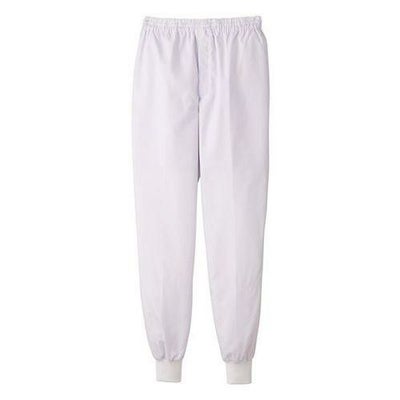 交差汚染対策を意識したホワイト、サックス、グリーンの3色展開の高温作業場向けホッピングパンツです。素材メーカー独自の繊編技術“点タッチドライ設計”を採用し、肌とウェアの接触面積を少なくすることで肌のベタつきを軽減します。ウエストは総ゴム、フロントはコイルファスナー、スピンドル入り、ゴム取替え口付き。本体裾口はフライス、インナー裾口はゴム入りです。裏の縫い代はパイピング始末です。防透裏地は共布を使用、右前ウエスト裏マジックテープ式キーポケット付きです。