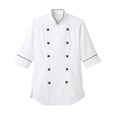 商品情報商品名:男女兼用ショップコート七分袖ホワイト×グリーン
