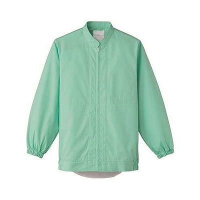 抗菌性と安全性に配慮した常温作業場向けスタンダードユニフォーム。軽作業に最適なスタンドカラーのジャンパー。体毛落下防止機能を備えた異物混入対策仕様、縫い代は巻き伏せ縫い、ウエストインナーはスナップボタン横付け。本体袖口、インナーの袖口はゴム入りです。前開きはセミオートコイルファスナー、左胸に内ポケット付き。ホワイト、サックス、グリーンの3色展開です。