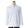 特記事項スタンドカラーにシングルの合わせのコックコート。洋食はもちろん、中華やインド、エスニックまで様々なシーンになじむ、汎用性の高さが人気です。平紐をしっかりと編み込んだ、本格仕様の組紐ボタンを使用しています。『フレッシュエリアR』は洗濯を繰り返しても抗菌力はほとんど落ちず、また、皮膚刺激も少ないため、安心して着用いただけます。左胸片玉縁ポケット付き。