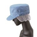 ツバ芯に耐洗濯性の高い織芯を採用。ゆったりとしたパターンで後調整マジックテープ付き。ケープ部分は裾にゴムを入れ、通気性の良いメッシュを採用。交差汚染に対応した、ホワイト、サックス、グリーンの3色展開です。