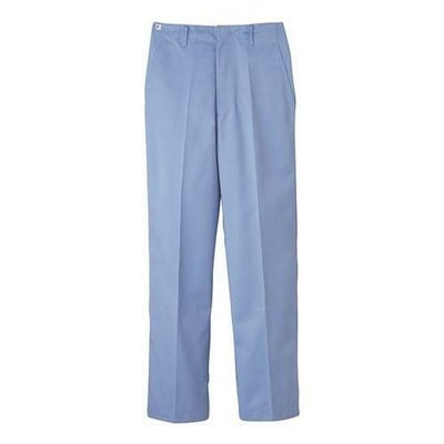 異物混入対策仕様のスタンダードの常温作業場向けストレートパンツ。前開き金属ファスナー、両脇スラッシュ、右後片玉縁ポケット。インナー裾口ゴム入り、ホワイト、サックス、グリーンの3色展開です。(ホワイトは価格が異なります。)