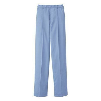 異物混入対策仕様のスタンダードの常温作業場向けストレートパンツ。ウエスト脇ゴム、フロントコイルファスナー、インナー裾口ゴム入りです。右前ウエスト裏マジックテープ式キーポケット付き。縫い代は巻き伏せ縫い、ホワイト、サックス、グリーンの3色展開です。