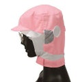 軽作業に適したショートフード。本体は通気性・放熱性に優れ快適な肌触りをキープする涼感素材「シャミラン(R)」額・頬・首は伸縮性の高いT400を使用、耳部分のメッシュは通気性と通音性を高めます。前部の留めと後頭周りはマジックテープで調整可能。ツバは洗濯耐久性の高い織芯を使用しています。マスクは円掛け式、メガネ差しははさみ込み式。交差汚染に対応したホワイト、サックス、グリーン、ピンクの4色展開です。