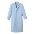 耐摩擦・薬品性に優れた素材を使用した、テーラードカラー、比翼開きの検査衣。左胸外、両腰箱ポケット付き。袖口は紐で調節できるタイプです。後中心裾にベントが入っています。