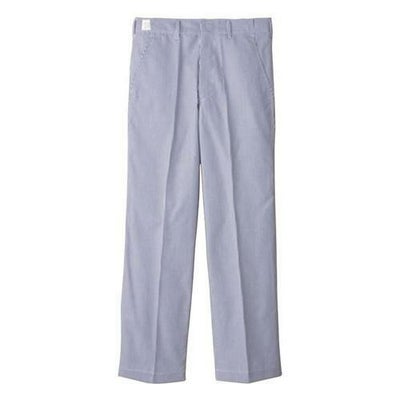 特記事項厨房用のカラーパンツ。前ファスナー開き、両脇斜め、右後ろ片玉縁ポケット付き。