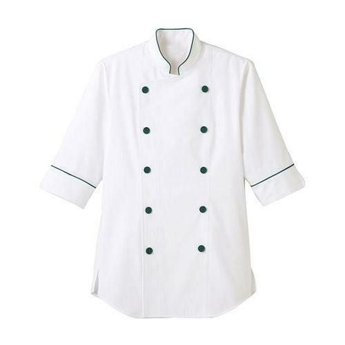 男女兼用ショップコート七分袖 ホワイト×グリーン D1129 /業務用/新品/小物送料対象商品