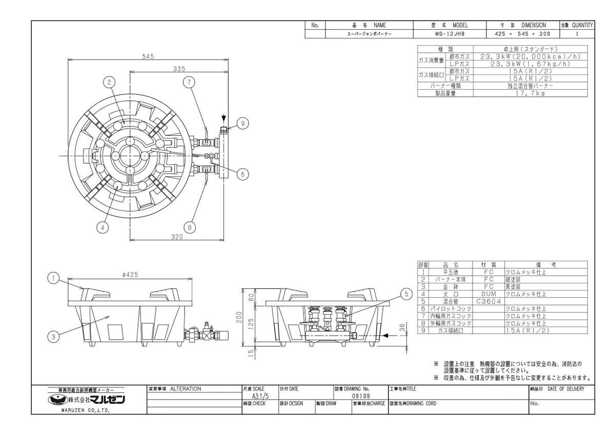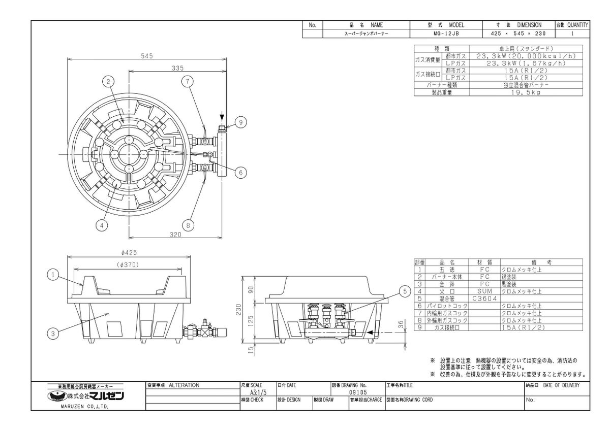 他の画像を見る MG-12JB 【マルゼン】ガスバーナー 幅425×奥行545×高さ230(mm)【業務用/新品】【送料無料】 定価 ¥ 114,400 (税込)のところ 販売価格 ¥ 62,407 税込 詳細を見る
