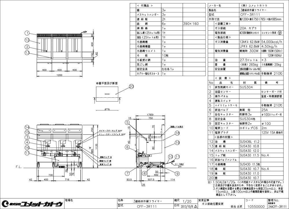 他の画像を見る CFF-3R111 【コメットカトウ】 三連結赤外線フライヤー 27.5L×3 3槽式 幅1200×奥行765×高さ885(mm) 【業務用/新品】【送料無料】 定価 ¥ 6,380,000 (税込)のところ 販売価格 ¥ 3,377,637 税込 詳細を見る
