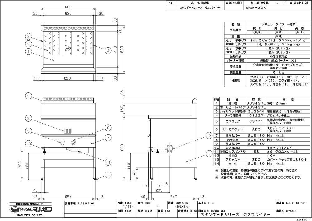 他の画像を見る MGF-30K 【マルゼン】 ガスフライヤー 30L 幅680×奥行600×高さ800(mm) 【業務用/新品】【送料無料】 定価 ¥ 315,700 (税込)のところ 販売価格 ¥ 163,350 税込 詳細を見る