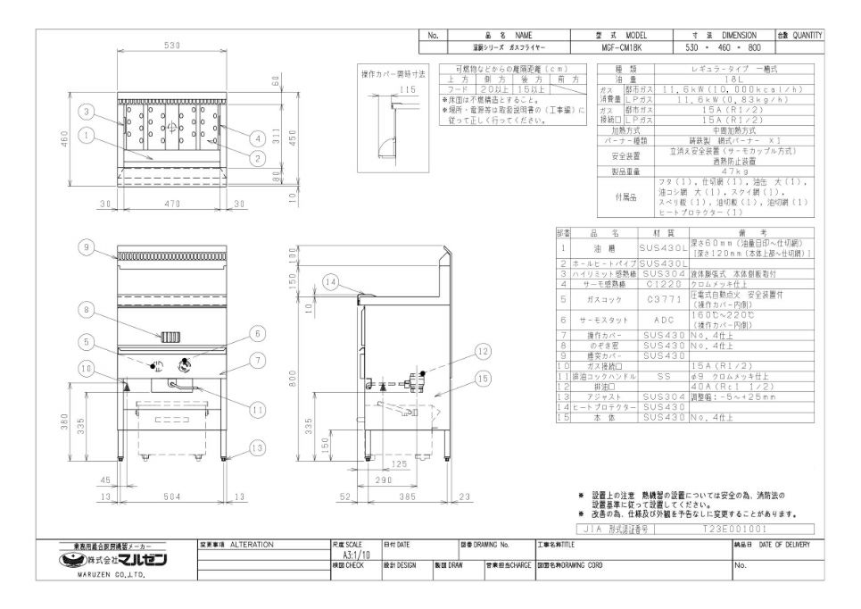 他の画像を見る 対応エリア限定価格!! 【搬入設置費込み!】MGF-C18K マルゼン 涼厨フライヤー 18L プロパンガス 幅430×奥行610×高さ800(mm)【業務用/新品】【送料無料】 定価 ¥ 228,800 (税込)のところ 販売価格 ¥ 201,850 税込 詳細を見る