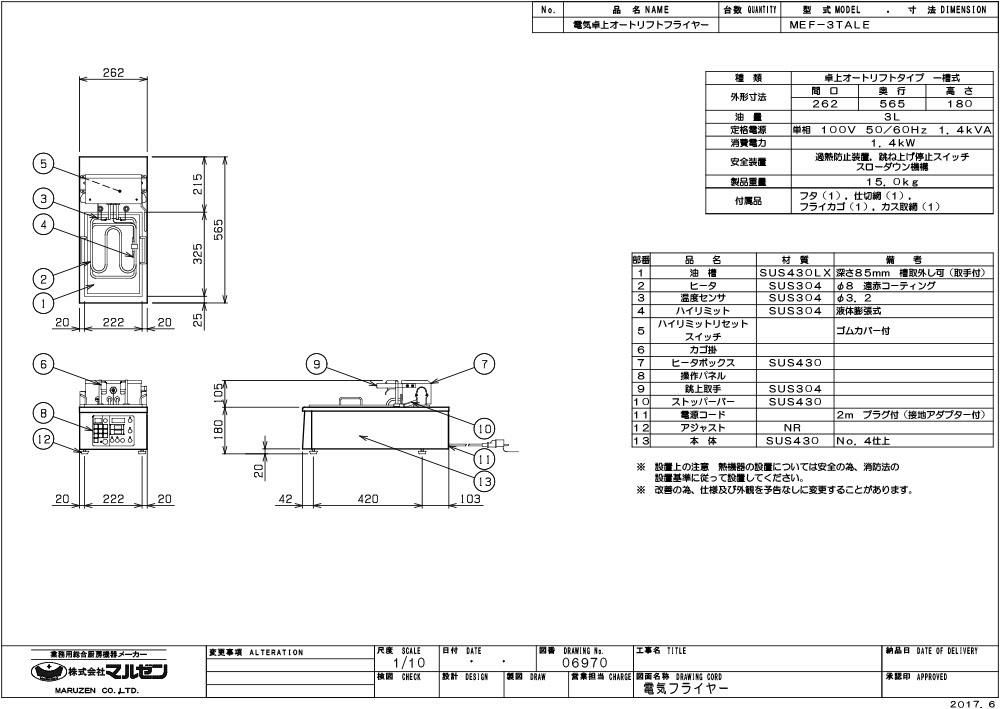 他の画像を見る 優れた安全性と充実の調理機能を搭載! MEF-10TPD 【マルゼン】 電気フライヤー 10L 卓上ファーストフードタイプ 幅315×奥行600×高さ260(mm) 【業務用/新品】【送料無料】 定価 ¥ 306,900 (税込)のところ 販売価格 ¥ 158,015 税込 詳細を見る