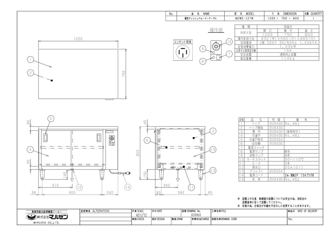 他の画像を見る 【業務用/新品】【マルゼン】電気ディッシュウォーマーテーブル 片面式 MEWD-127 幅1200×奥行750×高さ800mm【送料無料】 定価 ¥ 421,300 (税込)のところ 販売価格 ¥ 242,241 税込 詳細を見る
