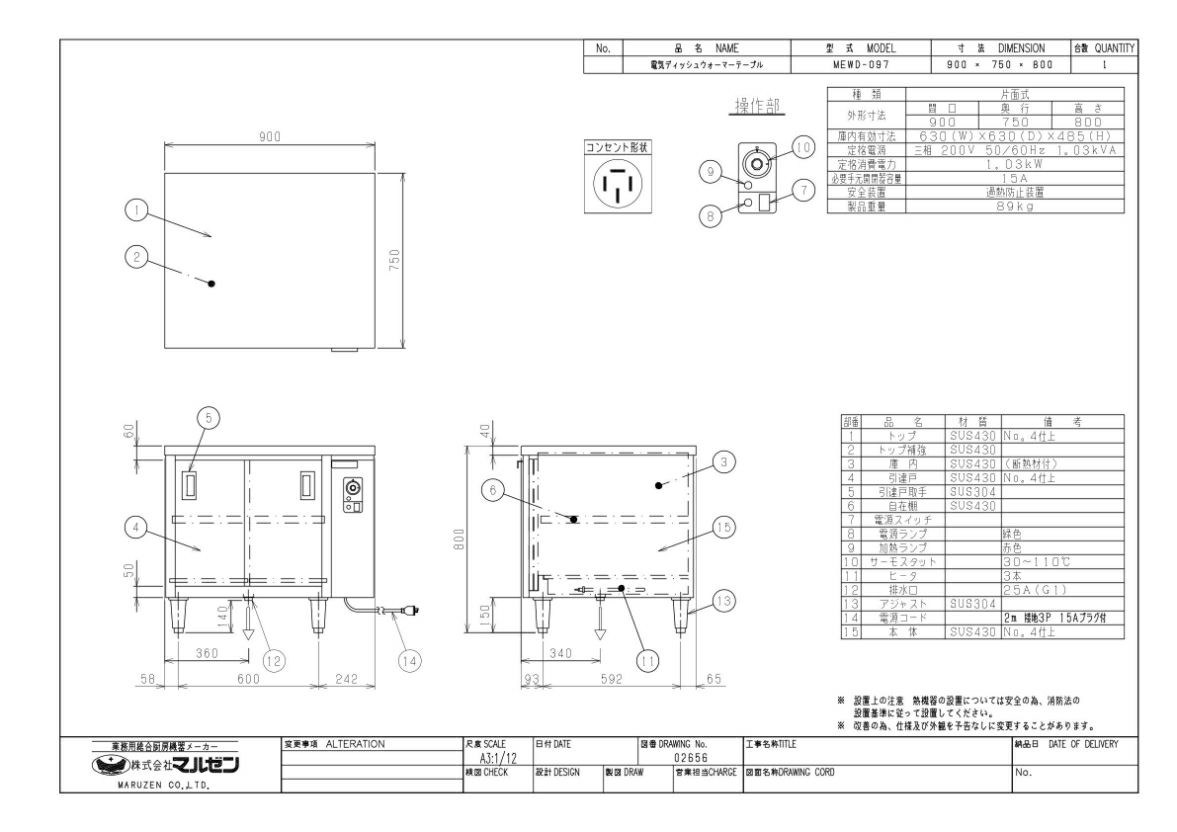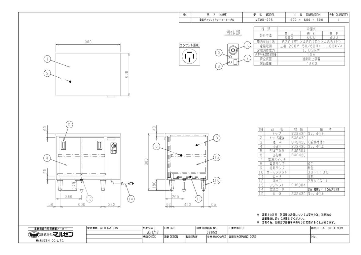 他の画像を見る 【業務用/新品】【マルゼン】電気ディッシュウォーマーテーブル 片面式 MEWD-096 幅900×奥行600×高さ800mm【送料無料】 定価 ¥ 356,400 (税込)のところ 販売価格 ¥ 204,920 税込 詳細を見る
